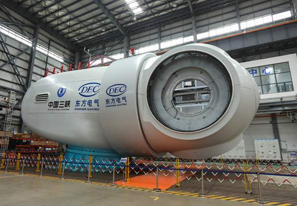 图注:2022年2月22日,东方电气集团自主研制的13兆瓦抗台风型海上风电机组成功下线,是企业以改革之火点燃创新引擎的生动实践
